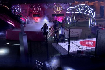 Após dançarem muito, os finalistas agora conversam sentados no Espaço Multiuso. Kaysar repara em ...